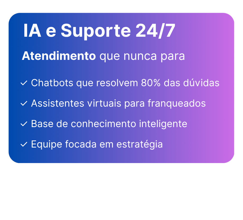 Automatize operações, reduza custos em 40% e escale sua rede com IA e inteligência estratégica.