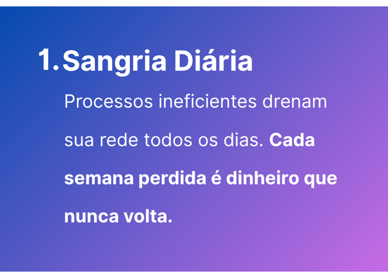 Pare de perder dinheiro com processos manuais. Transforme sua rede em uma máquina de alta performance.